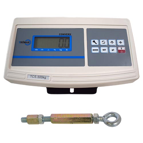 Indicador solo peso Trumax para conversión de basculas mecanicas a electro-mecanicas, fabricado con carcasa en ABS, celda de carga de 60 o 100kg incorporada para conversion en capacidades de 500 y 1000kg respectivamente, con display LCD y luz de respaldo LED, batería recargable. Funcion de conteo por muestreo, pesaje por porcentaje y limites de peso. Incluido tensor para instalación, de facil instalacion y configuración.