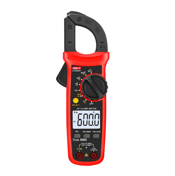 Pinza Amperimétrica 600A Trms Uni-Trend UT202A+, la pinza amperimétrica digital de la serie UT200+ están diseñada de acuerdo con EN61010-2010 CAT II 600V/CAT III 300V, con protección contra sobrecarga, alta confiabilidad, alta seguridad y alta precisión. Estos medidores se pueden usar para medir frecuencia de alto voltaje, corriente CA, la pinza amperimétrica UT202A+ TRMS es estable y confiable. Está diseñado con un circuito integrado a gran escala de conversor A/D como el núcleo y tiene medición de voltaje sin contacto NCV además de capacitancia hasta 60 mFv.