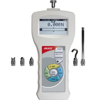 Los dinamómetros Axis FC están diseñado para medir la fuerza de tensión y compresión a alta velocidad, tiempo de muestreo de la medición configurable de 40 a 1000 muestras por segundo, se caracteriza por su forma ergonómica y facilidad de uso. Display LCD gráfico, variedad de funciones incluidas. Permite conexión a PC por RS232 o USB, exportación de datos por memoria MicroSD. Incluye maletín para transporte. Alimentación por baterías y externa de 110VAC..